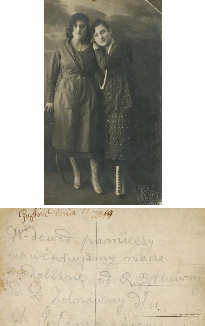 "In memory we dedicate our image to Miss Ch. Goldman, from R. Pytel and L. Zolna, Gombin 1920"