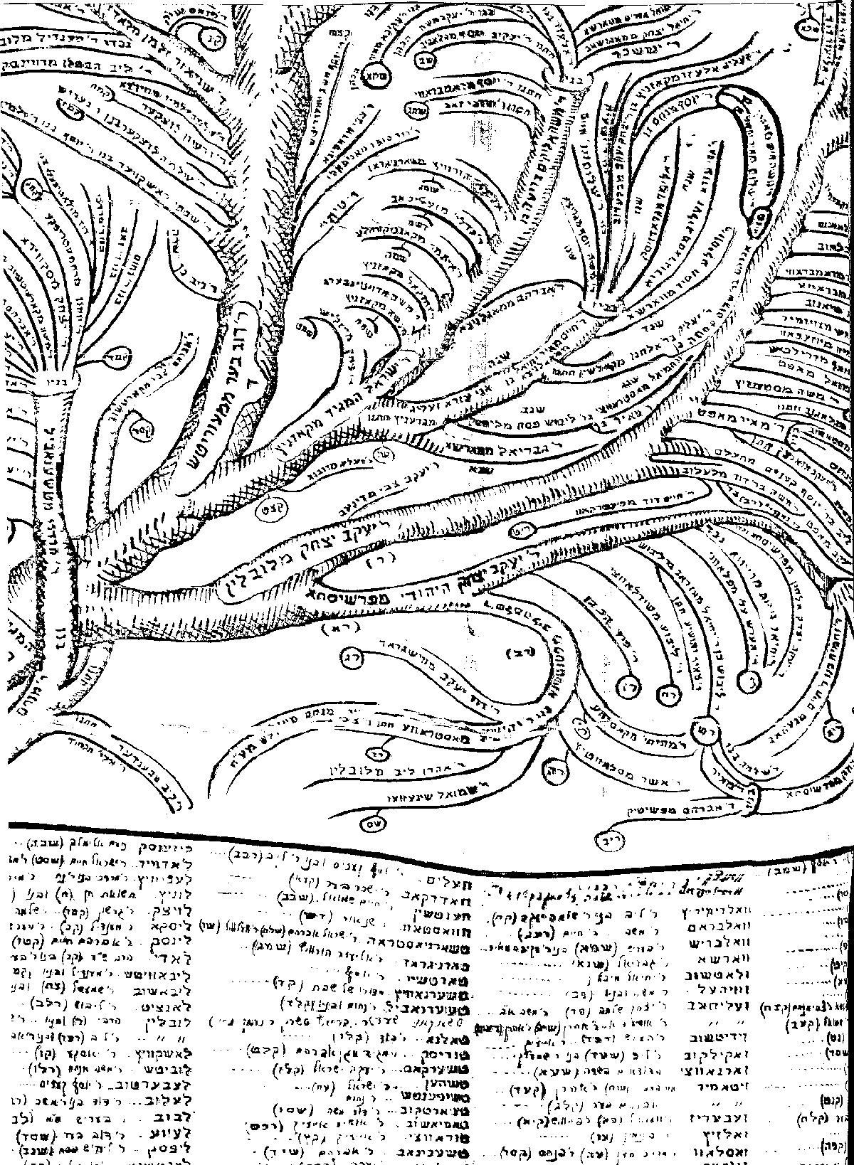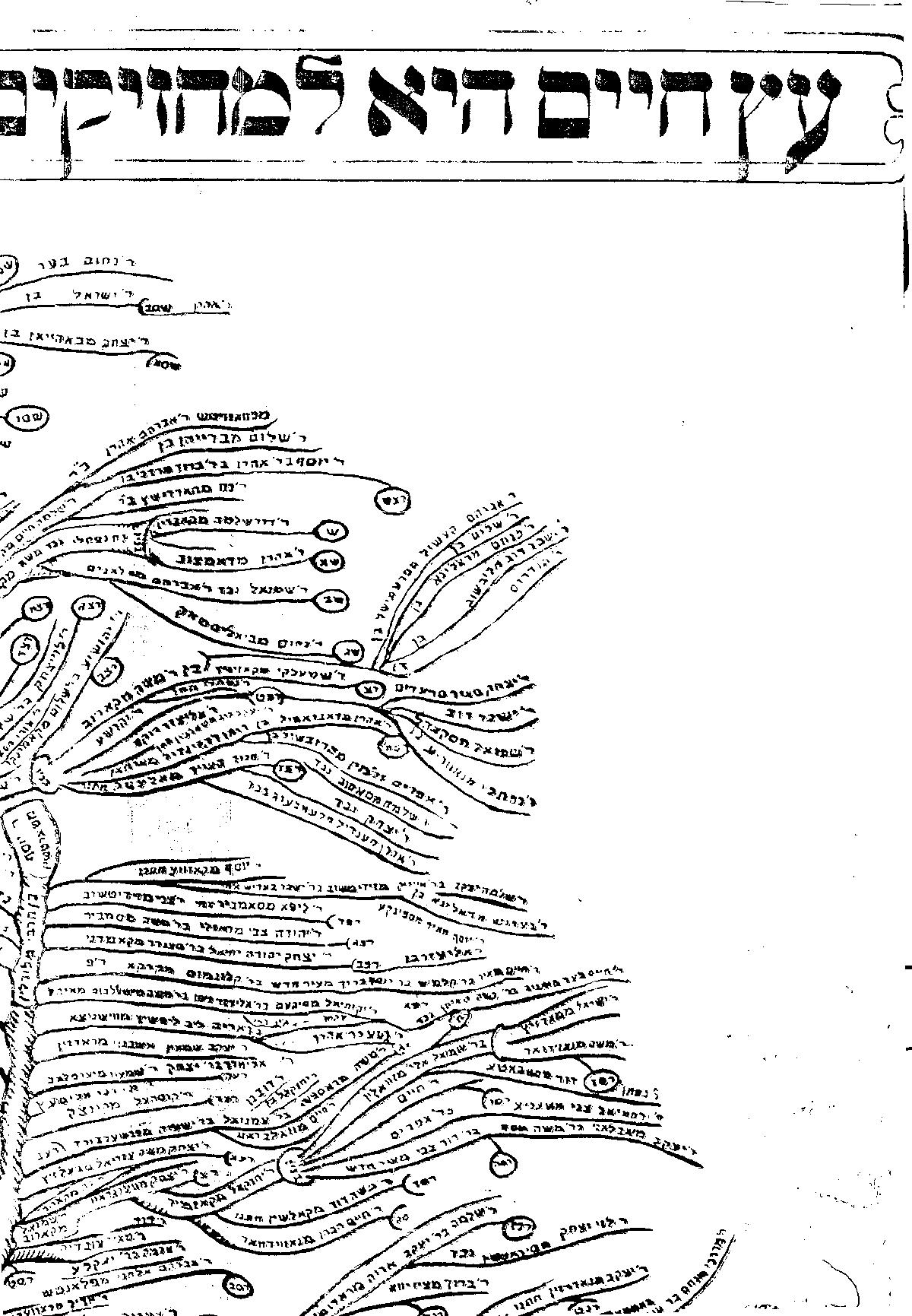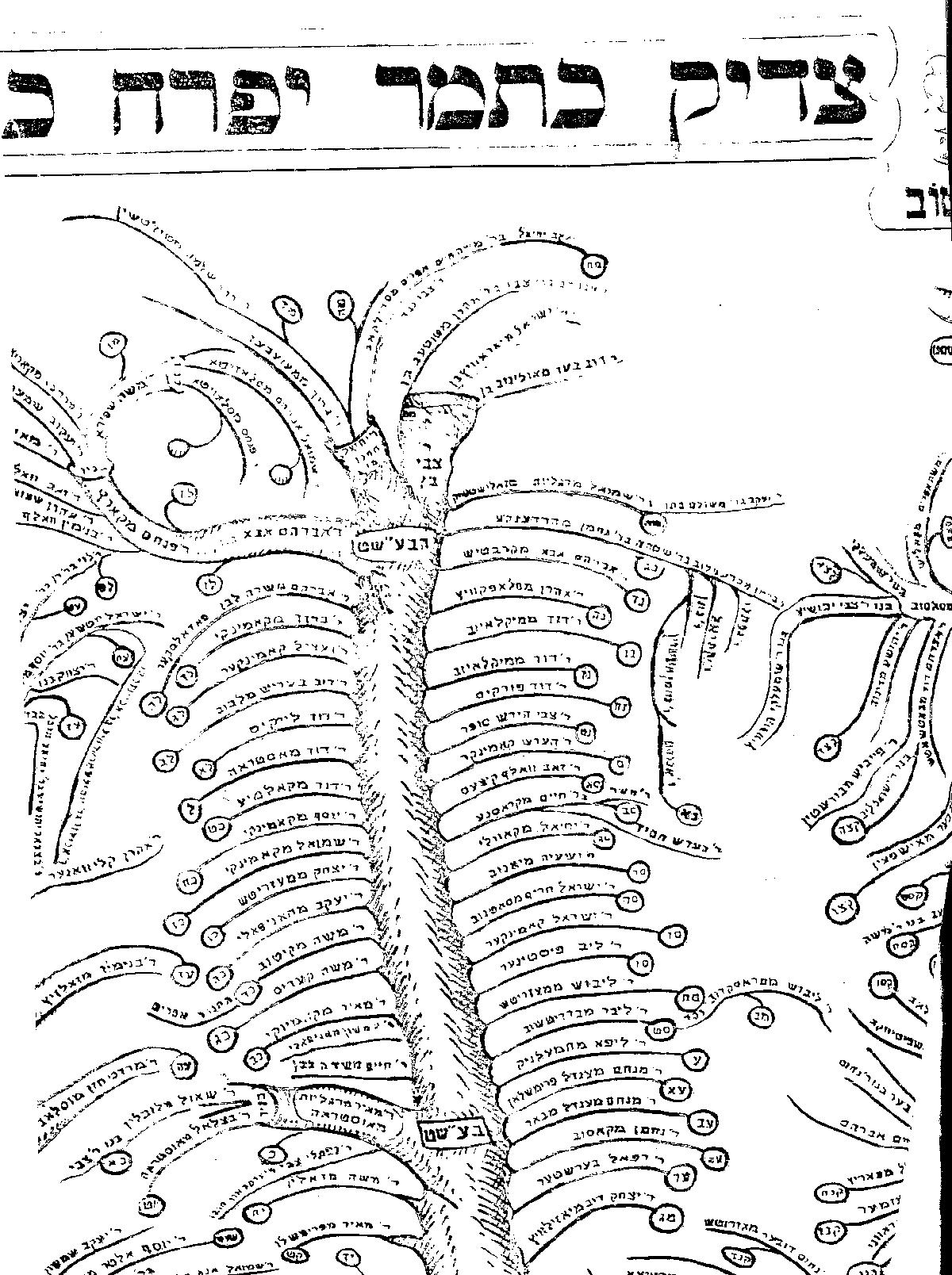 The image hereunder is made from parts of the tree, like a puzzle... Click a part to enlarge it and view the names of the Rabbis.