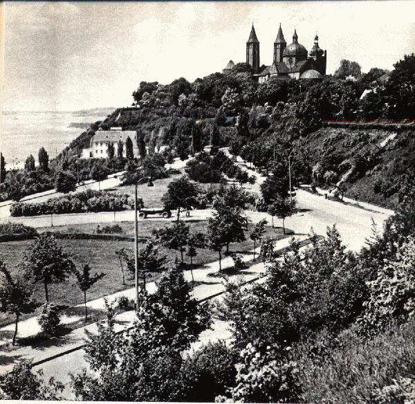 "Plock, one of Poland oldest cities, beautifully situated on high escarpment above the Vistula, in summer strewn with roses, Mount Tumskie rearing its impressive head crowned with the old Cathedral."