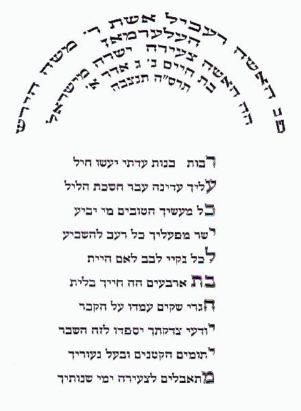 The inscription on the tombstone is an elegy in Hebrew, written in a beautiful traditional language. The first letter of each line constitutes the name of the deceased: