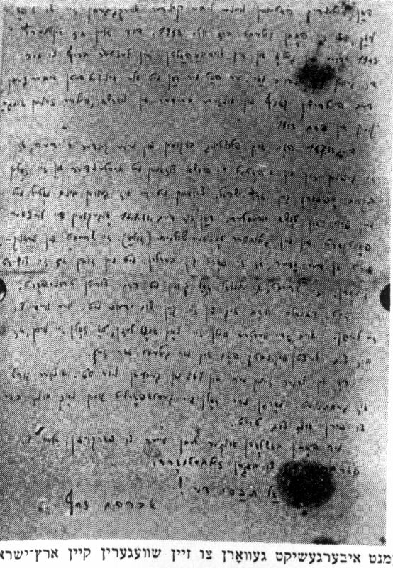 On 14.7.1943 I received all of a sudden a notice form my children that they are staying in a hotel in Warsaw together with foreign citizens and soon they are about to go to Eretz Israel. With them stayed Bunim Motyl and his wife, and Tasza Bressler.