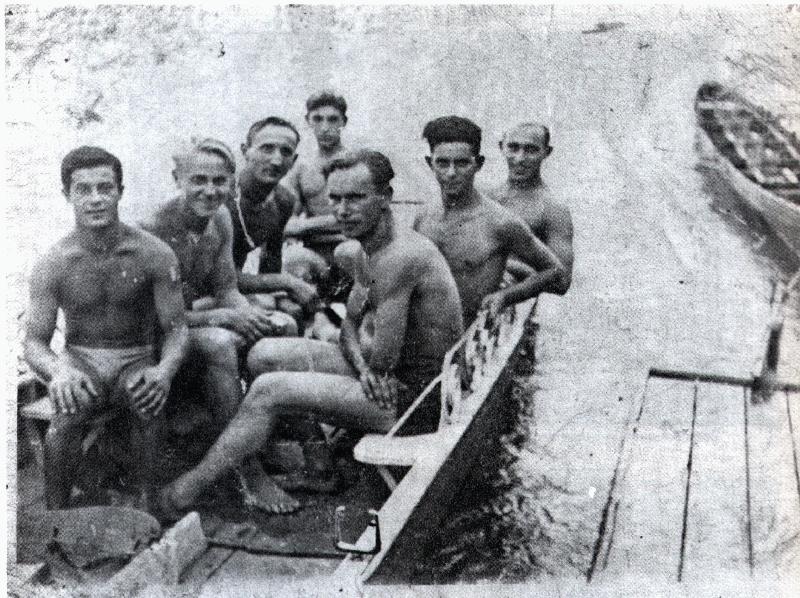 Y First from left: Rudek Lubraniecki, a known sportsman in town. He died a hero in the Treblinka uprising. He was one of the leaders of the insurrection and was responsible for storing and distributing arms and munitions. Rudek was shot while setting a tank of gasoline ablaze.