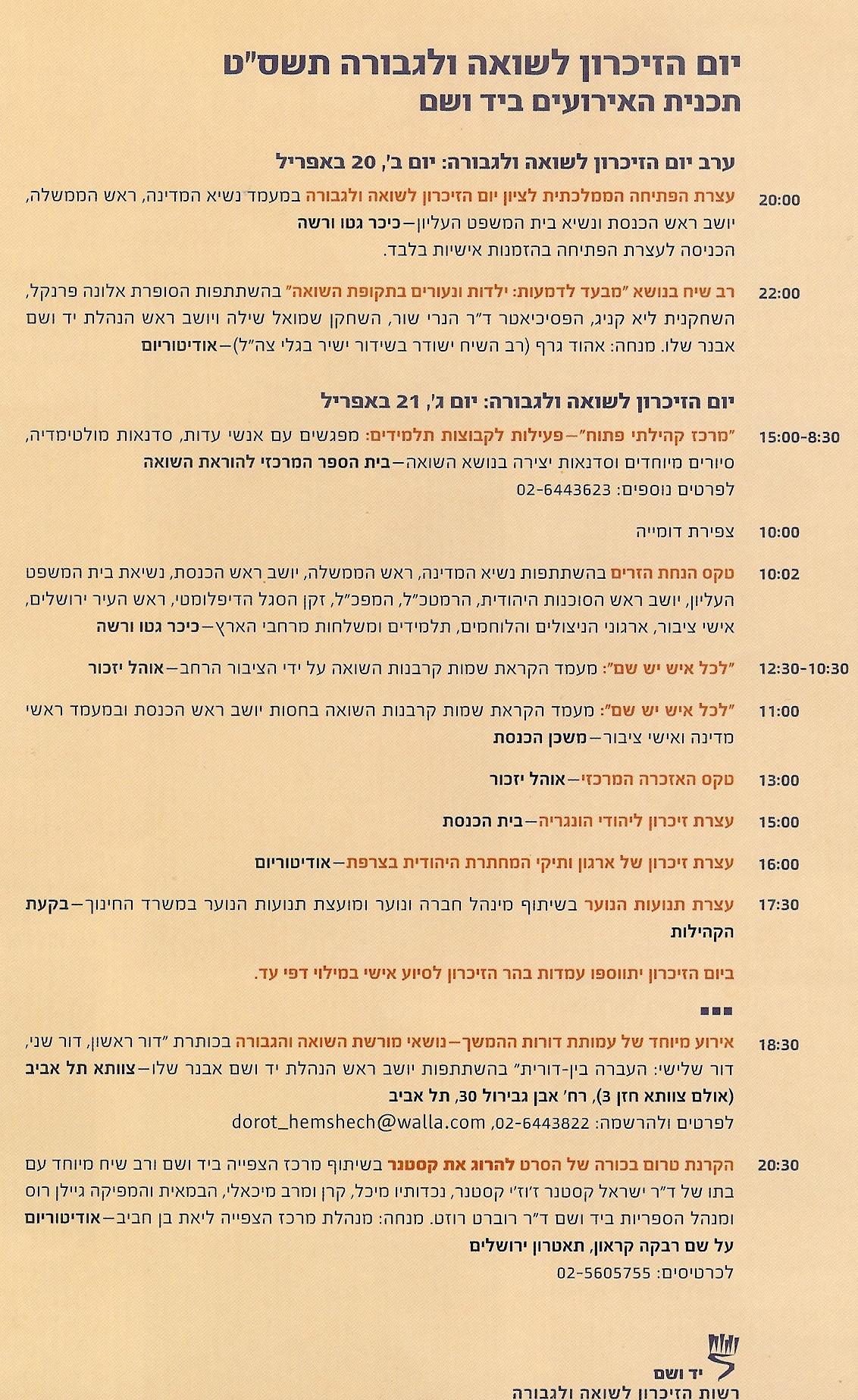 Partial List of the Events in Israel on the Holocaust Day 2009