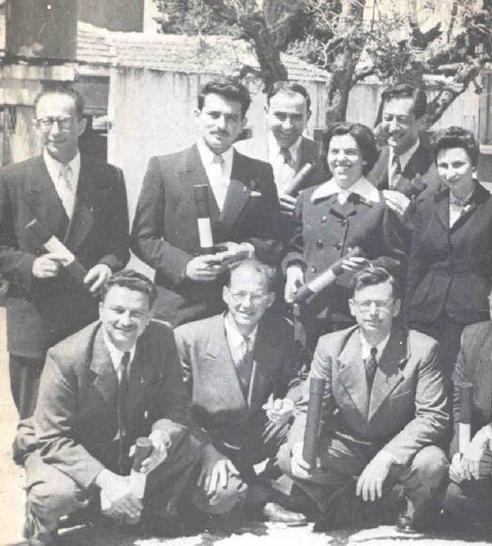 Prof. Sadye Emiel receives his Ph.D., standing 2nd to the left