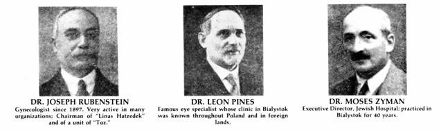 Some of the Well-Known Jewish Physicians in Bialystok Dr. Joseph Rubenstein, Dr. Leon Pines, Dr. Moses Zyman |