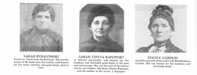 Sarah Tzivya Rapoport: A beloved personality and famous for her kindness and charitable good deeds to the poor and unfortunate. She was the wife of the famous citizen and scholar, Abraham Zalman Rapoport, and the mother of the writer, I. Rapoport.