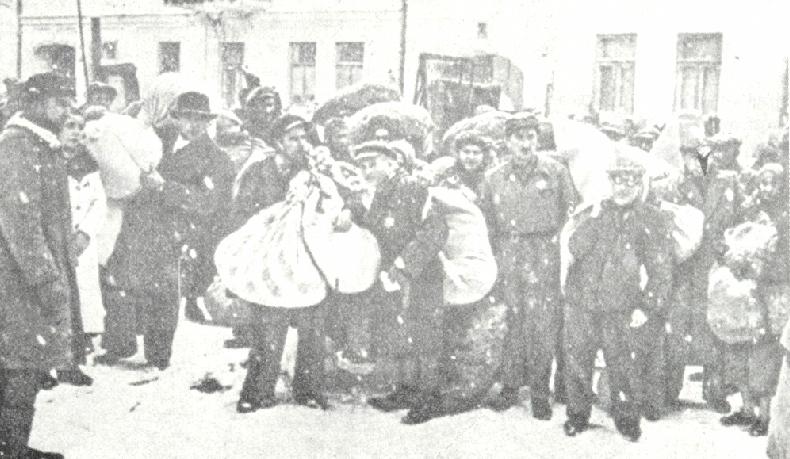 The elderly, women and small children were a tragic scene, dragging their possessions through the streets or transporting them on wagons, fatigued and exhausted. The Polish peasants smelled a chance to profit from this Jewish misfortune. Offering their services with alacrity, they assisted the Jews in moving their households to the ghetto but demanded clothes, furniture, jewelry and other items as payment, which they were given. Mostly women and children were involved, since the men had earlier been sent by the Nazis to forced labor in other places.