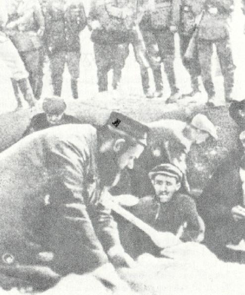 At the Zabia cemetery, yet another mound of earth rose, near several others containing the remains of small children who had suffocated just like Basja. During the two funerals, I saw heaps of dead bodies after the February liquidation. Lying in two long rows, they resembled pieces of lumber, cut to precision for customers. Included were men, women and children, silent witnesses to the tragedy, gaping holes in each corpse. They had been shot with dum dum bullets.