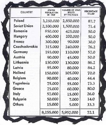 JEWISH VICTIMS OF THE NAZIS BY COUNTRY