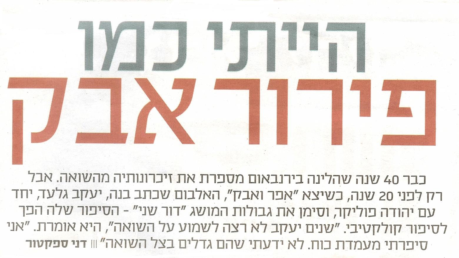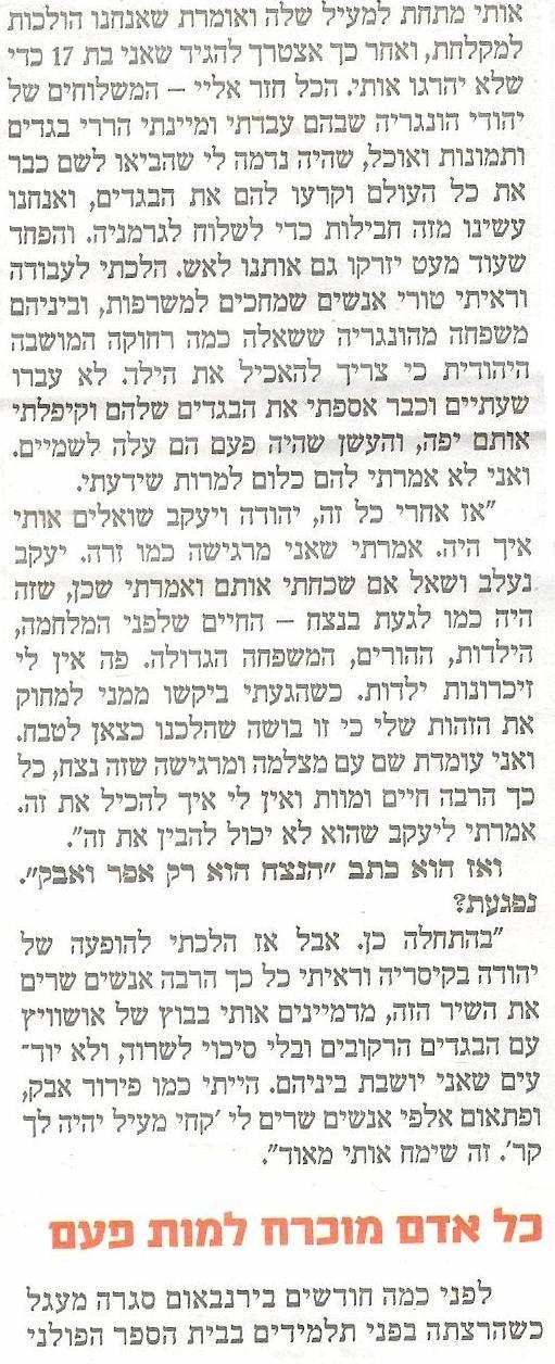מאמר שהתפרסם ב"ידיעות אחרונות", יום השואה והגבורה כ"ו ניסן תשס"ו, 1.5.2008