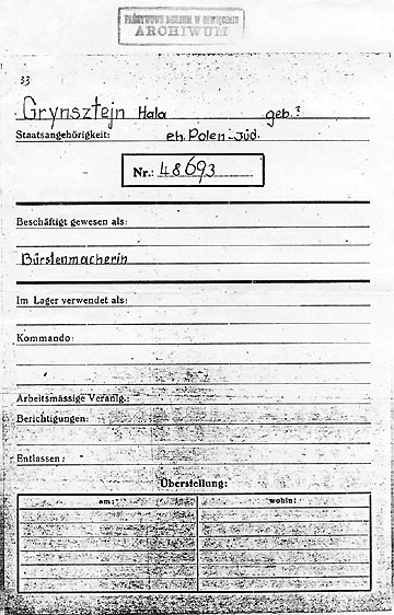 oświęcimskich nadesłanych z Moskwy. Hala Grynsztejn, numer
