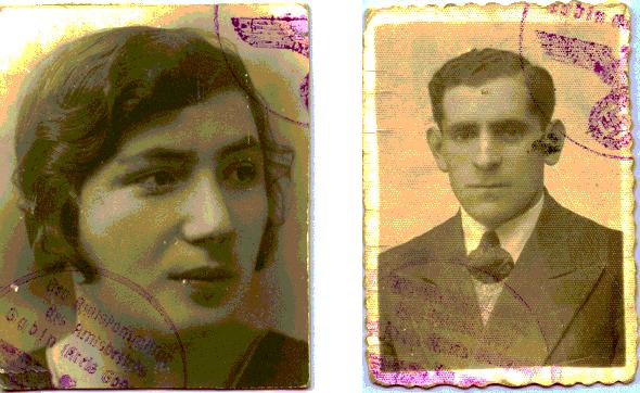 The identification photos of Josek and Cirel Chaja during the Ghetto times in Gombin. There is the Nazi Eagle/Swastika stamp on each picture.