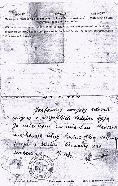 The last letter from Yosek Chaja to Rachel Gostinska (my aunt), his wife's cousin, written on 24.11.1940.