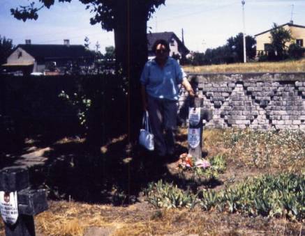 Mr. Wojewoda also gave me some brochures describing the battle and told us my brother was not buried in the general cemetery, as I had believed, but in the military cemetery in Trojanow, the outskirts of Sochaczew. We walked there accompanied by Mr. Wojewoda. These graves were also marked with stone crosses. The inscription on my brother’s grave read, “Four unknown soldiers killed in September of 1939.” Since I was able to identify my brother’s grave I felt he was no longer “unknown” and it should have a marker with his name on it. I paid to have this marker made to specifications and returned a couple of days later to see it affixed. This time I was able to put some flowers on the grave I knew contained the remains of my brother.