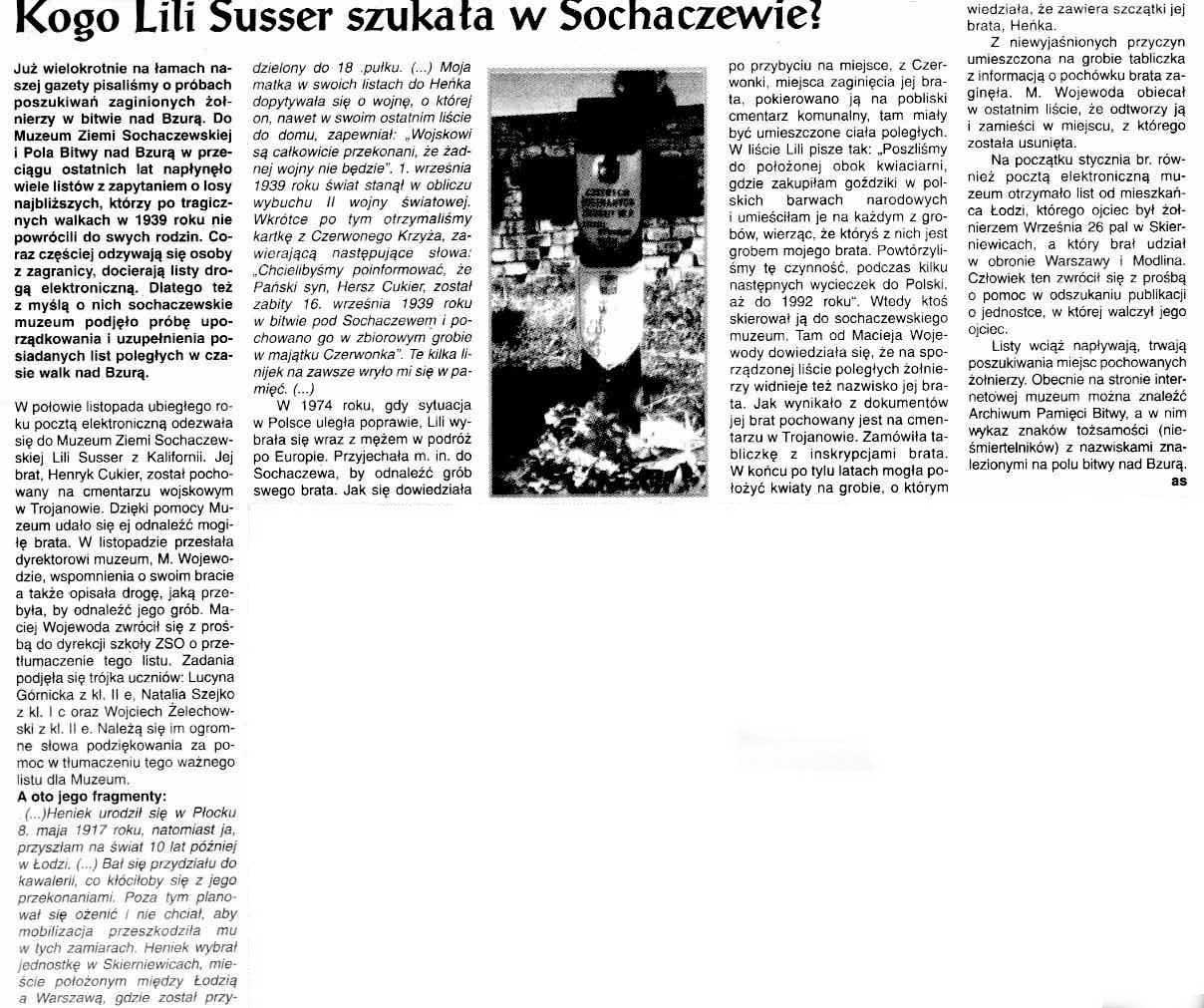 Her brother, Henryk Cukier, was interned on the military cemetery in Trojanow. Thanks to the help of the Museum she was able to locate his grave.