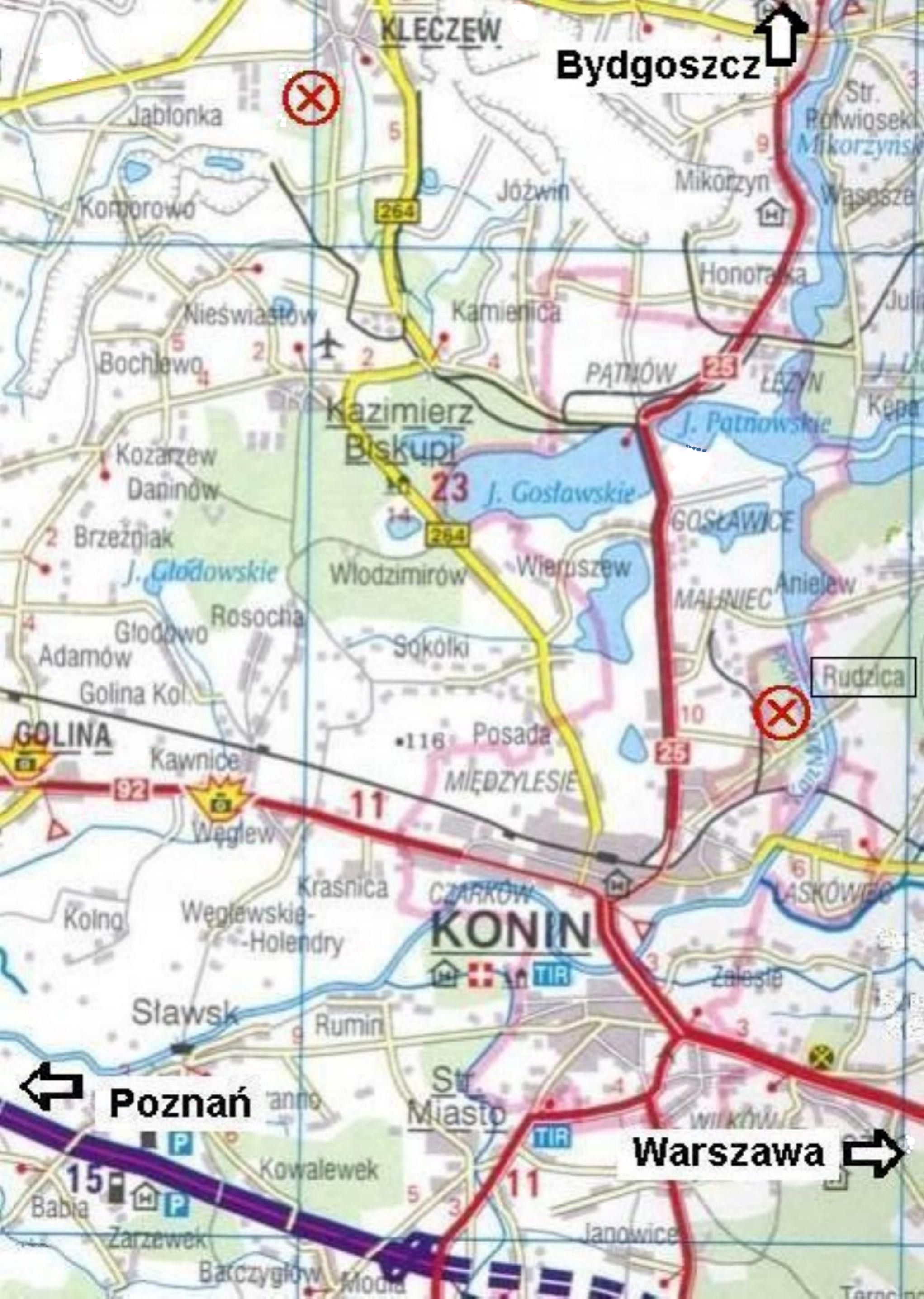 Between Niesłusz and Rudzica, forest district „Długa Łąka”, Between Kleczew and Kazimierz Biskupi, forest district „Wygoda” |