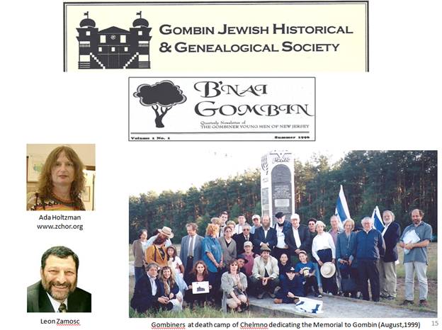 No re-telling of our organization's history would be complete without highlighting the herculean efforts of Ada Holtzman. Over the years she has made countless trips to Poland to research Jewish Gombin's history, recover matzevot and collaborate with Polish friends on various projects there. Her richly adorned website is a living testament to the memory of Gombin and its Jews. More than any other Gombiner, she has earned the right to be the heir to the legacy trail-blazed by Sam Rafel who, like her, worked tirelessly for the Jews of Gombin. On behalf of Gombiners everywhere, Ada , we thank you from the bottom of our hearts.