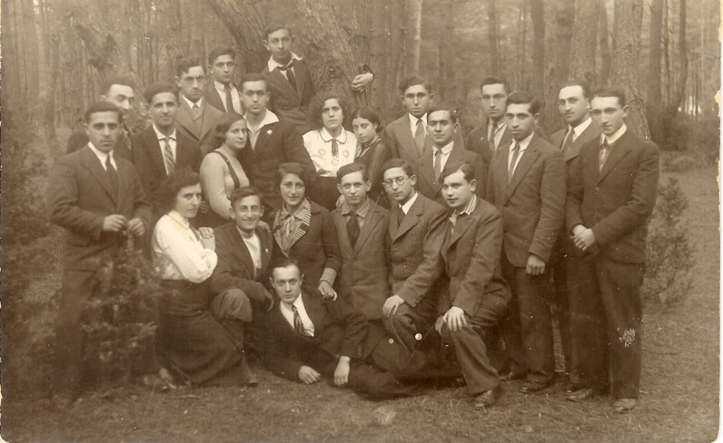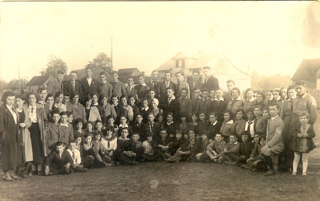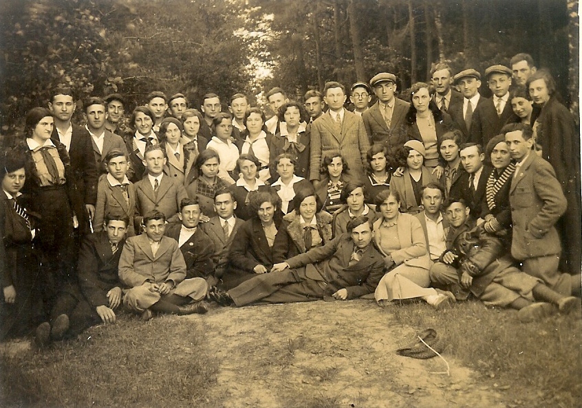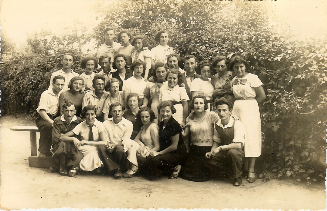 Hashomer Hatzair in Gombin 1936. Rywka Makower sitting with the children she guided, 7th from the right. |