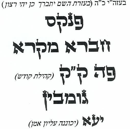 Pinkas of the Bible Society here, the Holy Community of Gombin, May the Lord found it well! |