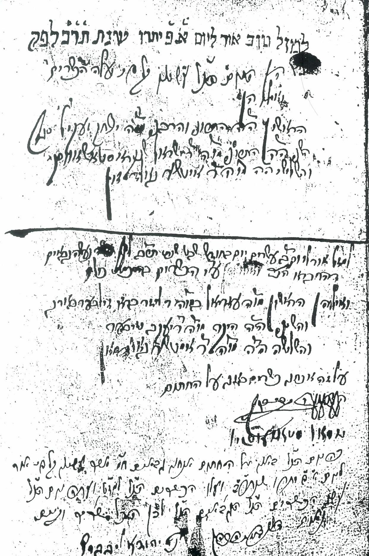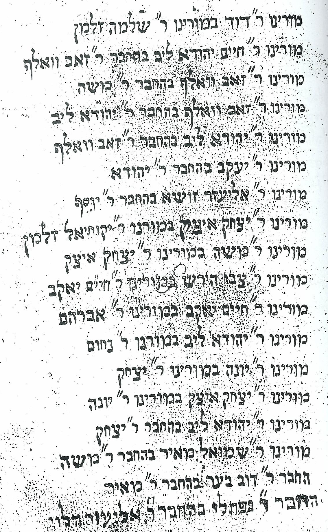 But there are many places where the surname already appears and so the Pinkas has also genealogical value. On page 140, I deciphered a summary of the election which took place in order to elect the men for the various roles in the Society and in the Synagogue. The handwriting is sometimes very difficult to read, in view of the time which has passed, the microfilm quality, and the text itself. The language is completely orthodox and religious, full of abbreviations, religious terms and sometimes in Yiddish.