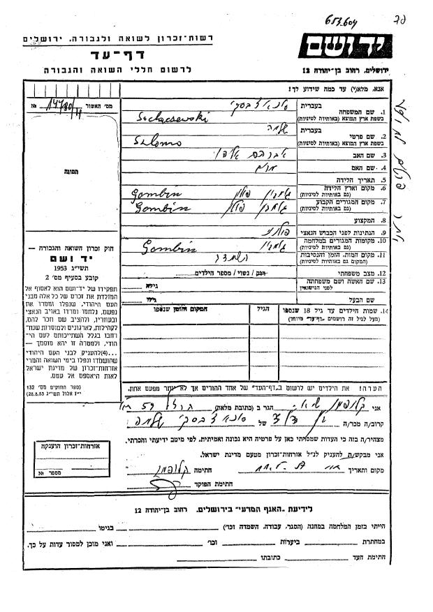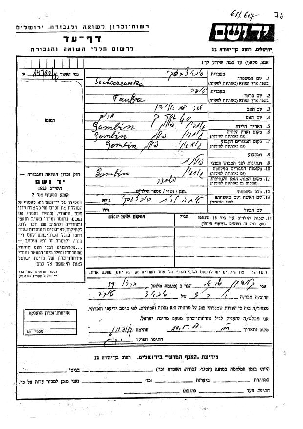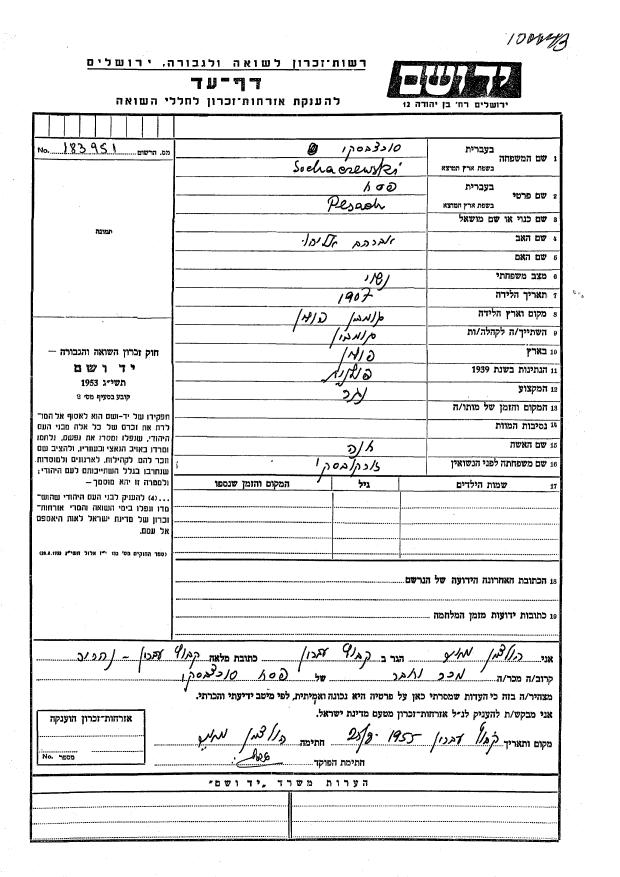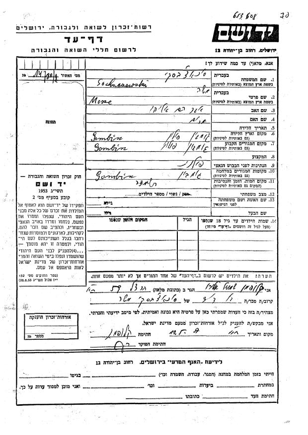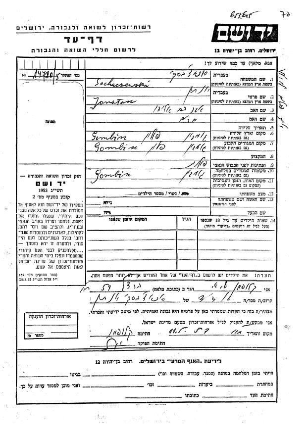 Sochaczewski Family Members in Yad Vashem Central Database of Shoah Victims'
