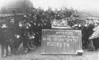 Feeding of the poor Jewish children in the Folks School No.2, in Gombin