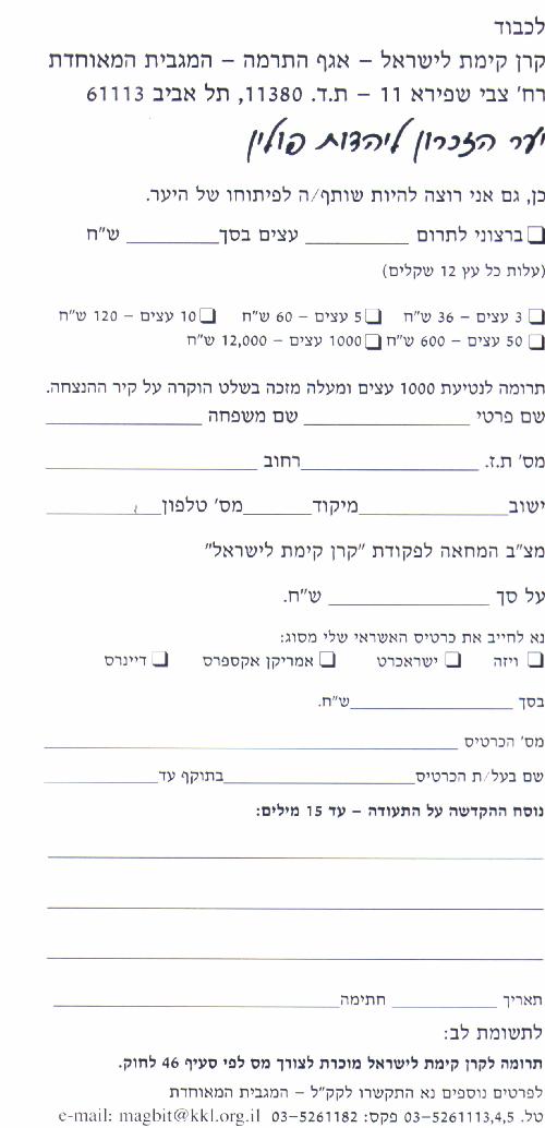 The Form (in Hebrew) to be sent to KKL -