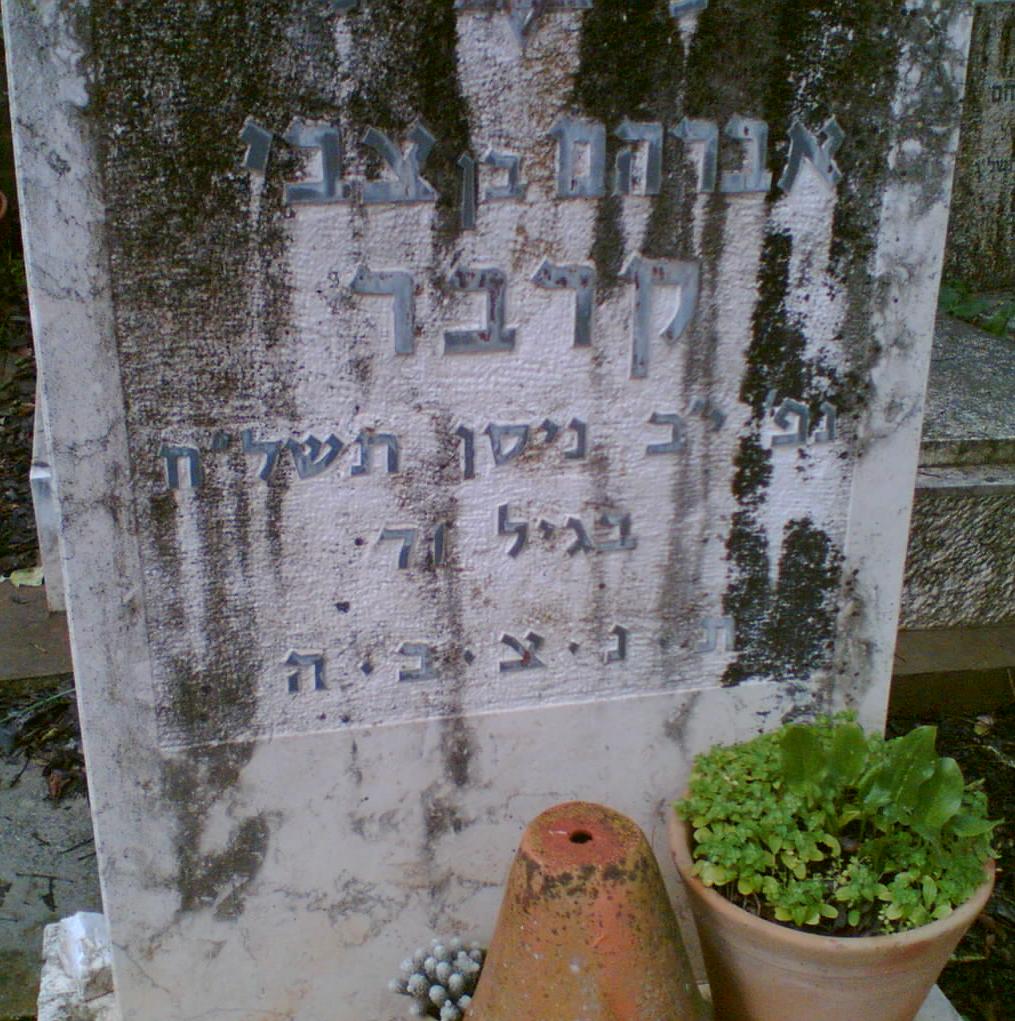 אברהם בן צבי קרבר נפ' יב' ניסן תשל"ח בגיל 71 ת.נ.צ.ב.ה.