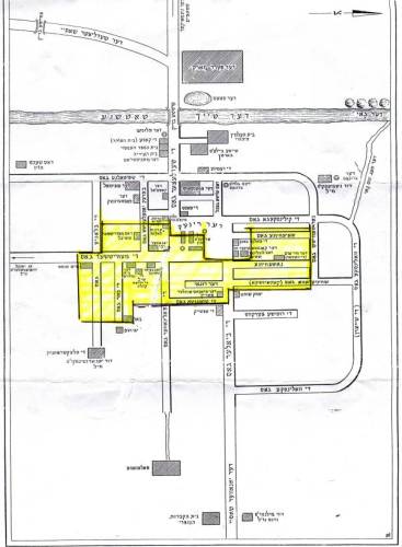 Map of Losice in Yiddish shows the extent of the Ghetto in 1941.