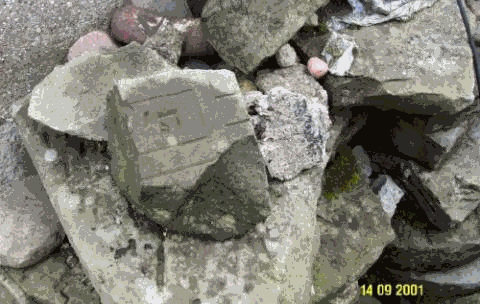 This photograph was taken in the backyard of a house used as the Gestapo headquarters. The stones were used here to build walls and as pavements.