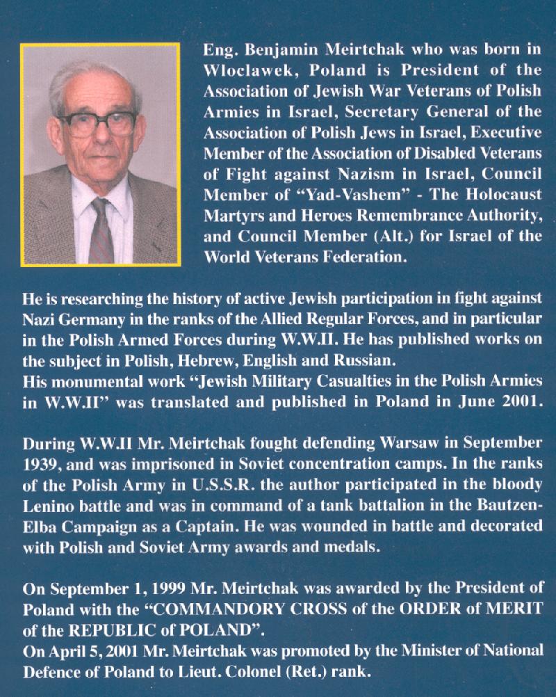 In 2001, Benjamin Meirtchak published a new book: "Jews-Officers in the Polish Armed Forces 1939-1945".
