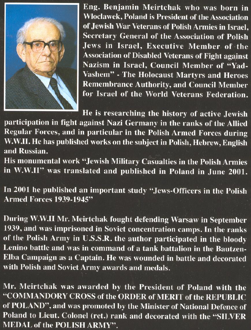 ranks of the Allied Regular Forces and in particular in the Polish Armies in His monumental work "Jewish Military Casualties in the Polih Armies in W.W.II" was translated in Polnd in June 2001. During WWII Mr. Meirtchak