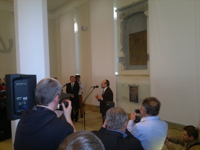 15.03.2013: in the dedication ceremony of the restored Beth Midrash as a Jewish Museum: Michael Levi (to the left) and Jakob Guterman, a painter and a writer, born in Płock 1935