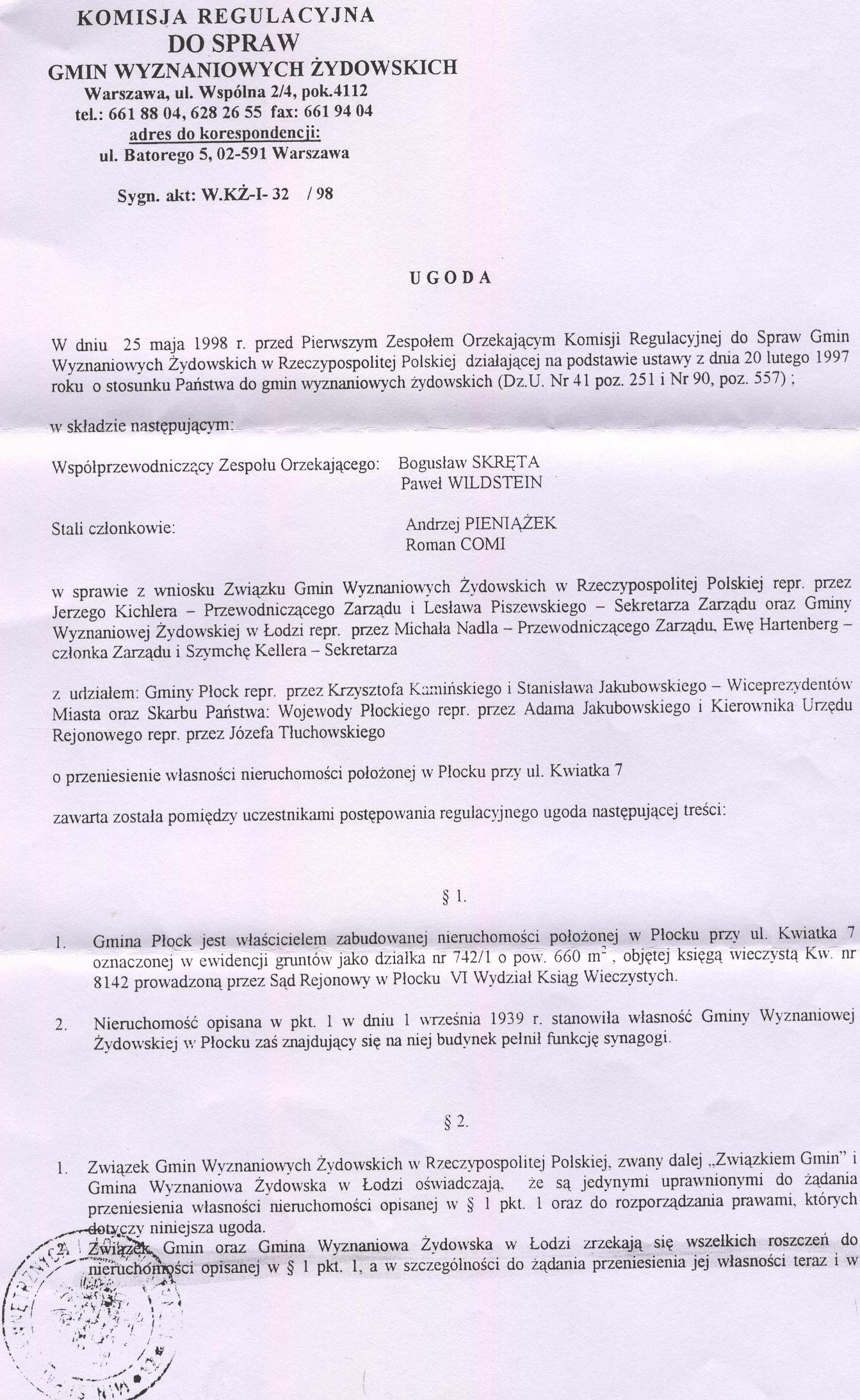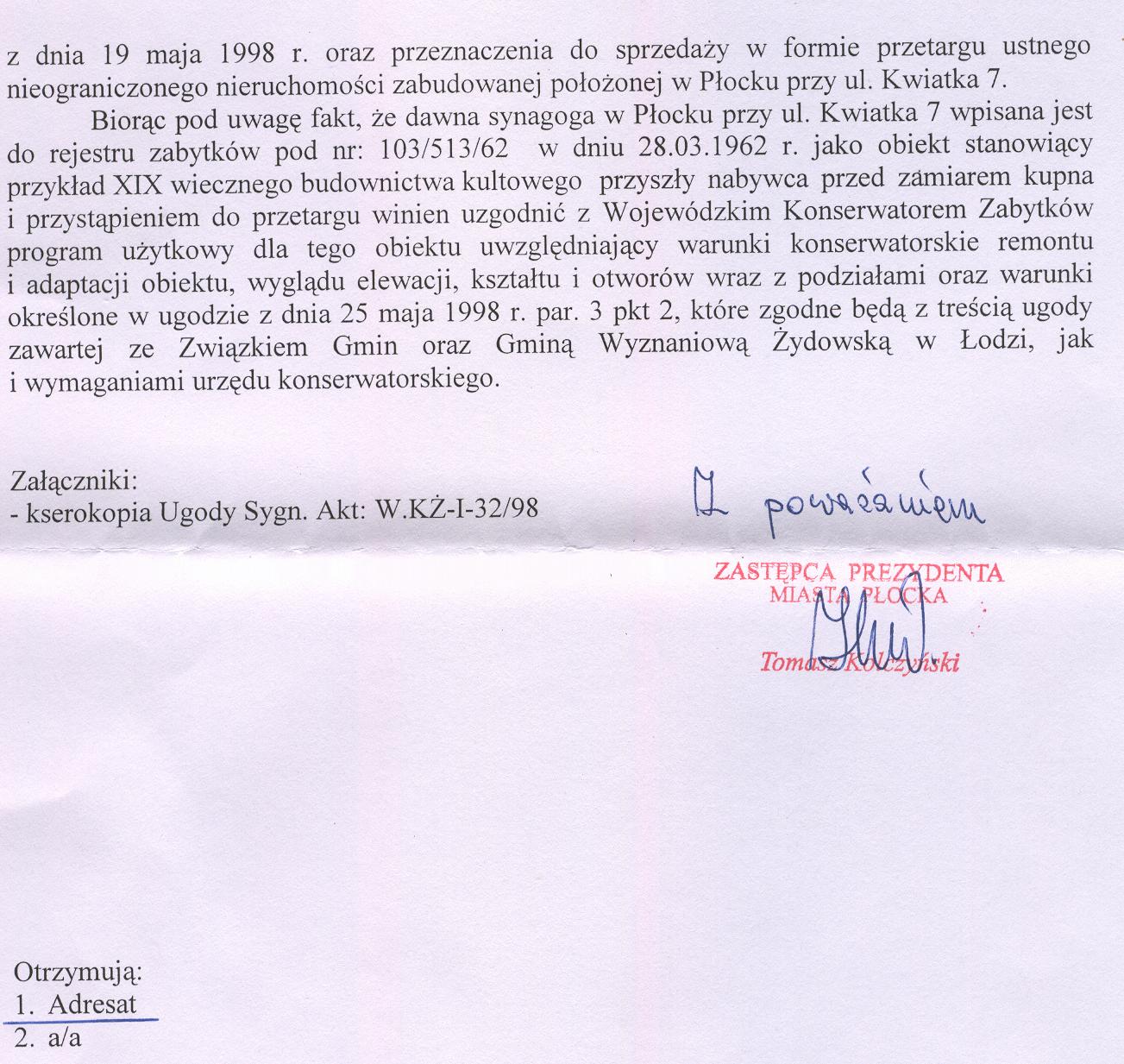 Jan Przedpełski The Translated by Edyta Gawron Who is responsible for the tragic lot of As it’s well known the building of In the years 1992-1997 the local government of the city of According to the law of the The Authorities of Union of Jewish Religious