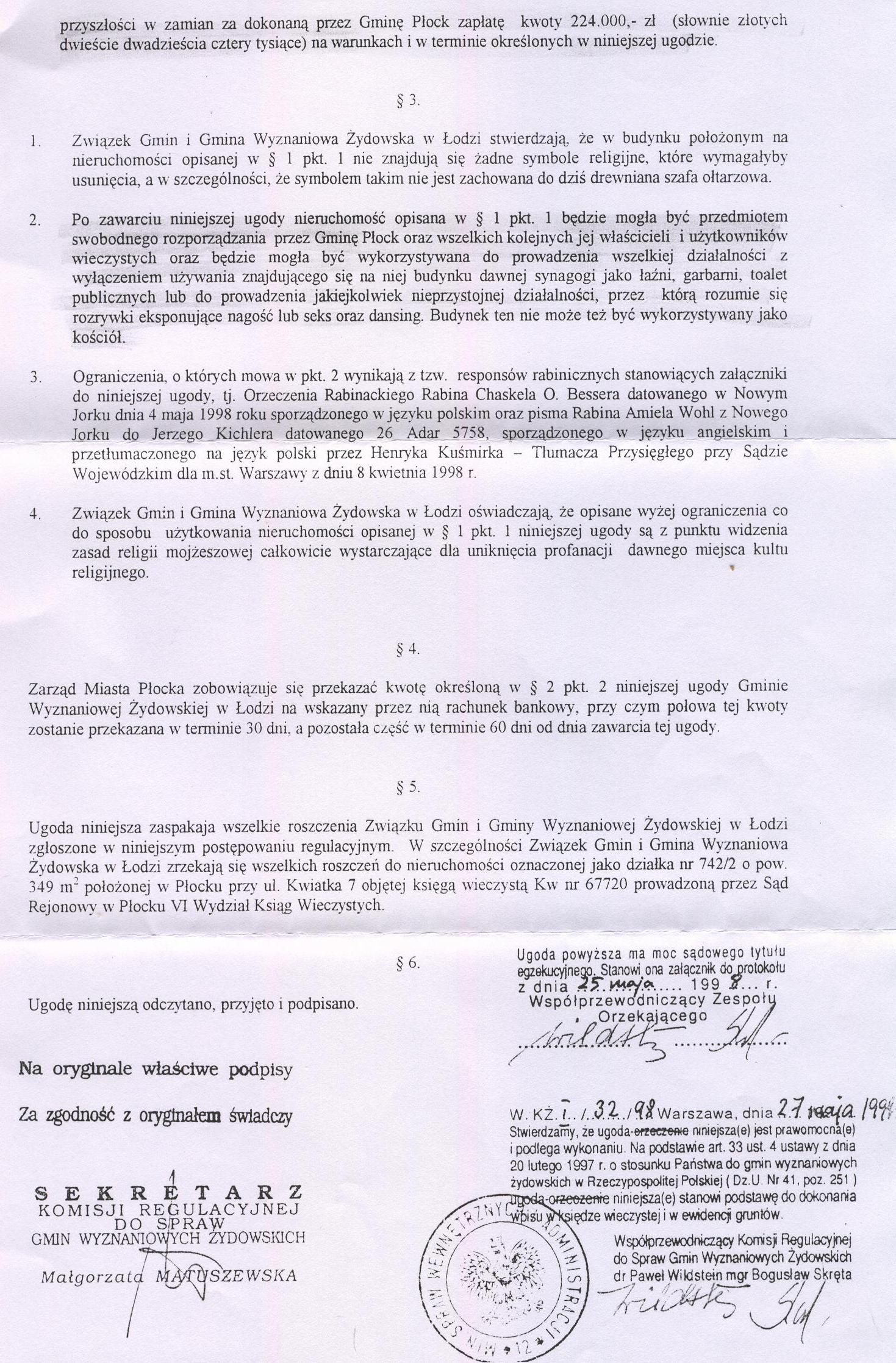 for 224,000 zloties. The sale agreement stated that the synagogue was not to be