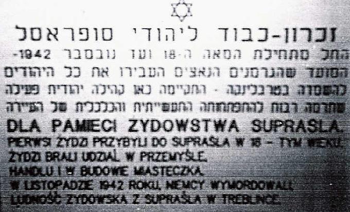 A Memorial in Suprasl erected by the Suprasl Landsmanschaft in Israel