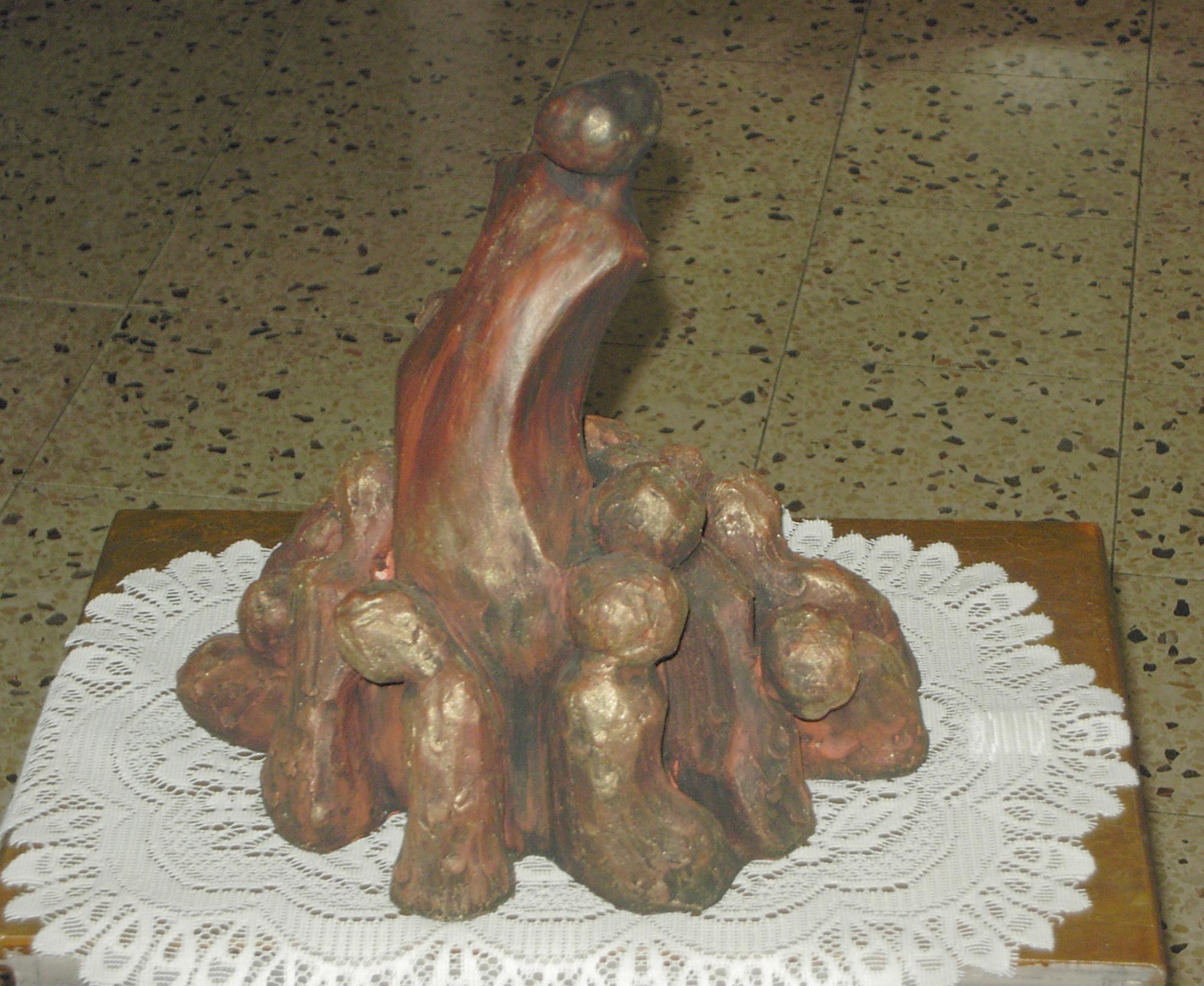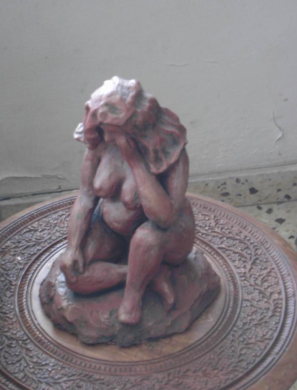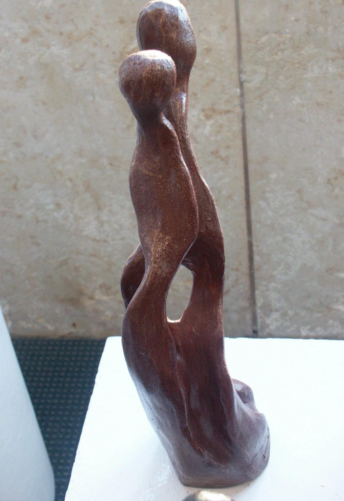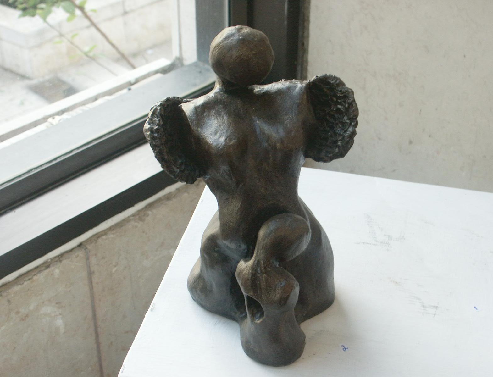 I build my sculptures in material from nothing as I begin from random assembly of shapeless pieces of clay to a whole mass which emerge and shapes up. The shapes come from my inner existence, institutively at first and then slowly slowly the amorphous material changes in front of me to shape and texture, which carry me to the definitive direction. Then I stop and ask the bloc in front of me: "What actually you are trying to tell me?", what is the feeling inside of me to the sculpture which crystallize against my eyes' and I mould it to a perfection which brings my truth to light.