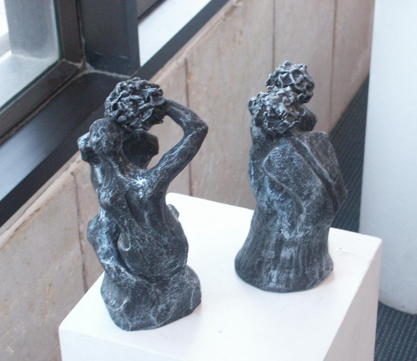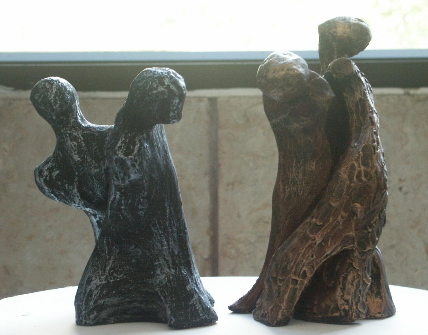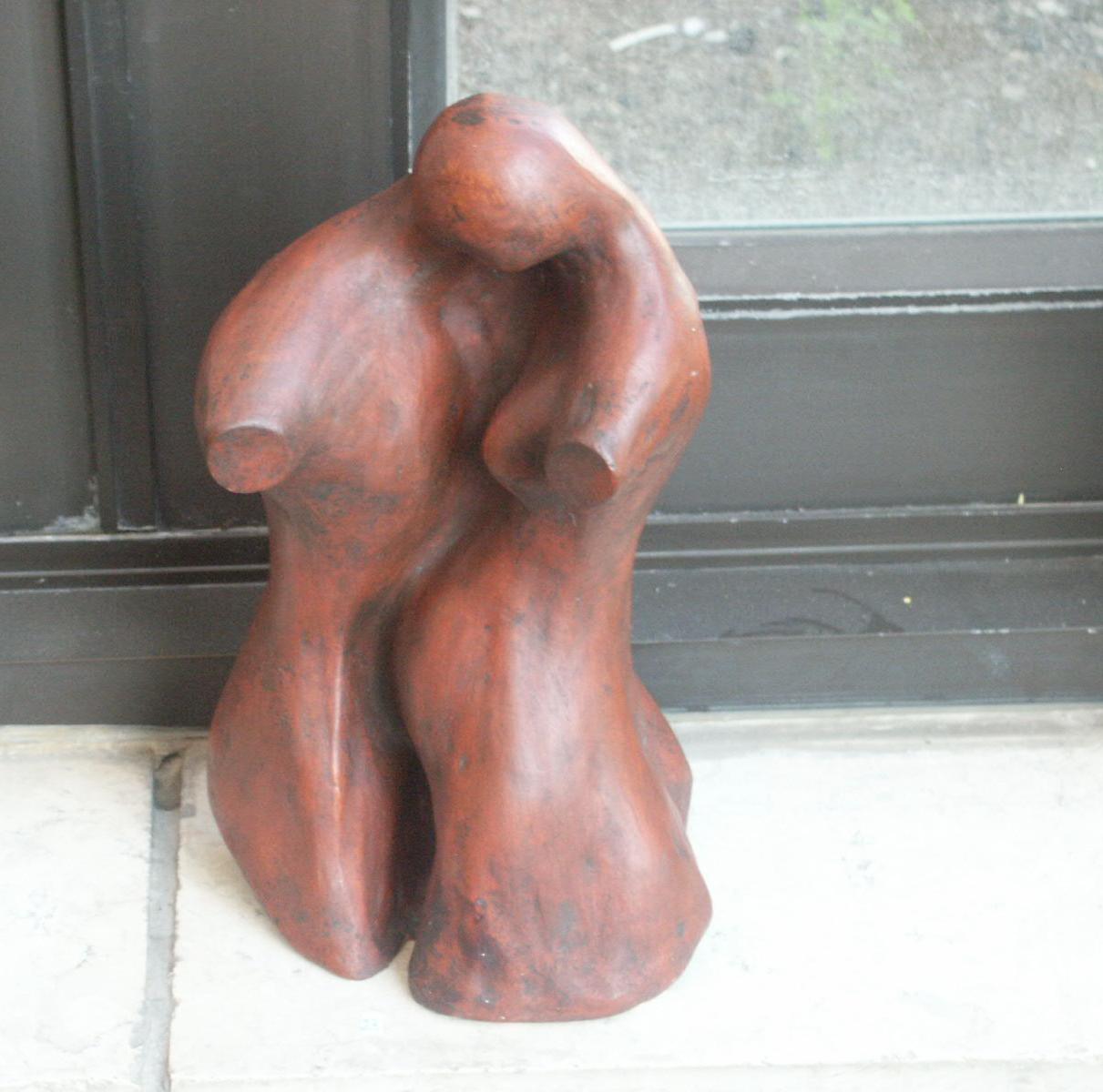 I build my sculptures in material from nothing as I begin from random assembly of shapeless pieces of clay to a whole mass which emerge and shapes up. The shapes come from my inner existence, institutively at first and then slowly slowly the amorphous material changes in front of me to shape and texture, which carry me to the definitive direction. Then I stop and ask the bloc in front of me: "What actually you are trying to tell me?", what is the feeling inside of me to the sculpture which crystallize against my eyes' and I mould it to a perfection which brings my truth to light.