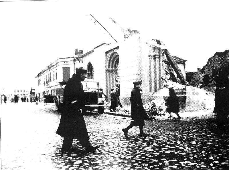 The great Synagogue of Tomaszow Mazowiecki being dismantled after it was outlawed by the Germans - 1940
