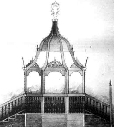 The men's synagogue was almost square and in a lower level than the entrance room. The synagogue had three domes: one over the men's synagogue, a second - over the entrance room, and a very small one over the doorway. The women's sections were at the north and at the south of the building.