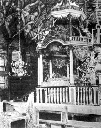 This synagogue was known as the most elaborate in Poland due to the carvings, the colorful wall-paintings done by Yehuda Leb and the colored glass windows.