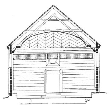 Its simple structure was somewhat like a granary. The women's section was in the gallery at the west. The men's synagogue was on a lower level than the entrance room and was covered with a barrel vault.