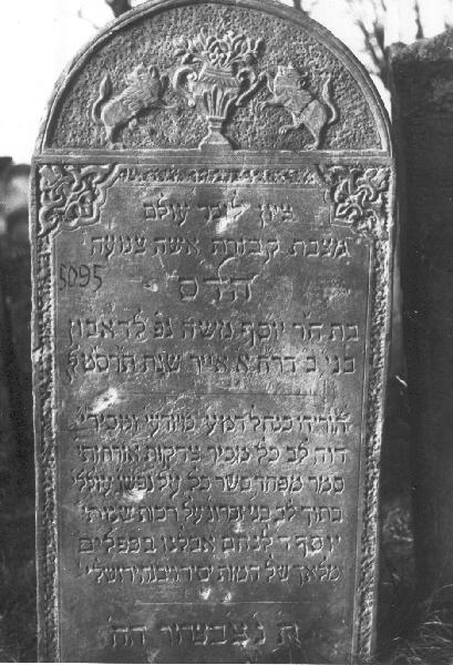 ציון לזכר עולם מצבת קבורת אשה צנועה הדס בת ה"ר יוסף משה נפ לדאבון בני' ב' דר"ח א' אייר שנת תרס"ט לפק