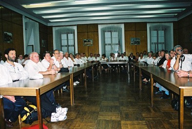 חברי מסע השורשים 2004, אורחי מר מרצ'ין זמוייסקי, ראש העיר זמושץ', באולם הכנסים בעיריה העתיקה |
