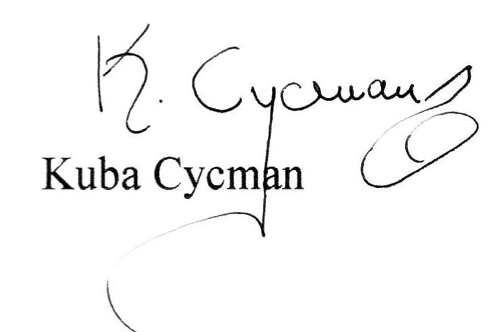 I, the undersigned, Kuba Cycman, Israel resident since 1991, having been apprised of my obligation to tell the truth under penalty of perjury hereby declare that: