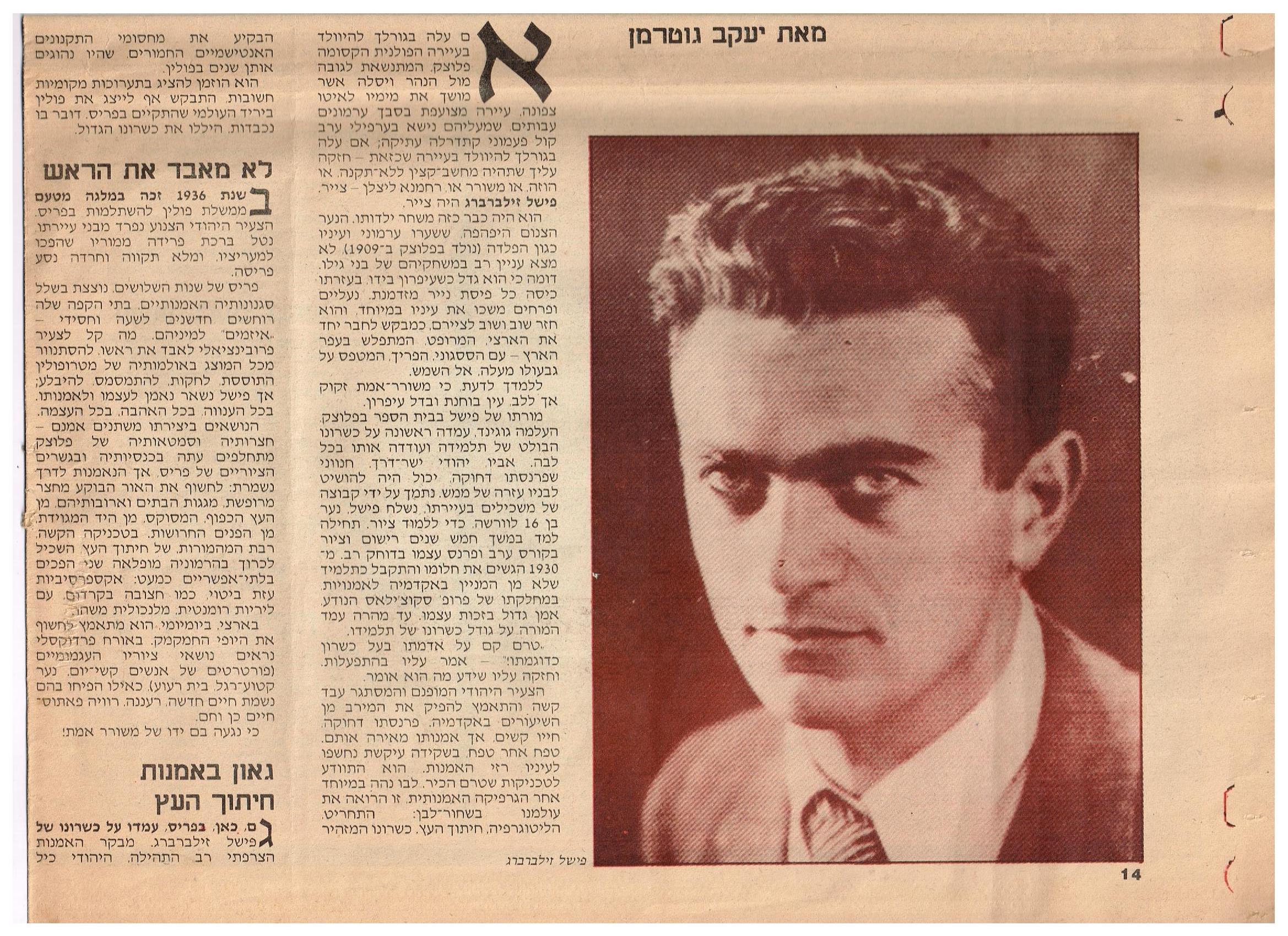 לפני שנים מספר הלכתי לספרייה הלאומית בפריס כדי לצלם כמה מהמונוגרפיות שנכתבו על פישל זילברברג (שאגב, קיצר את שמו לזבֶּר). לזכותם של מבקרי האמנות ייאמר שאכן, השכילו לעמוד במהרה על כישרונו של האמן הצעיר וידעו להעריכו נכונה.