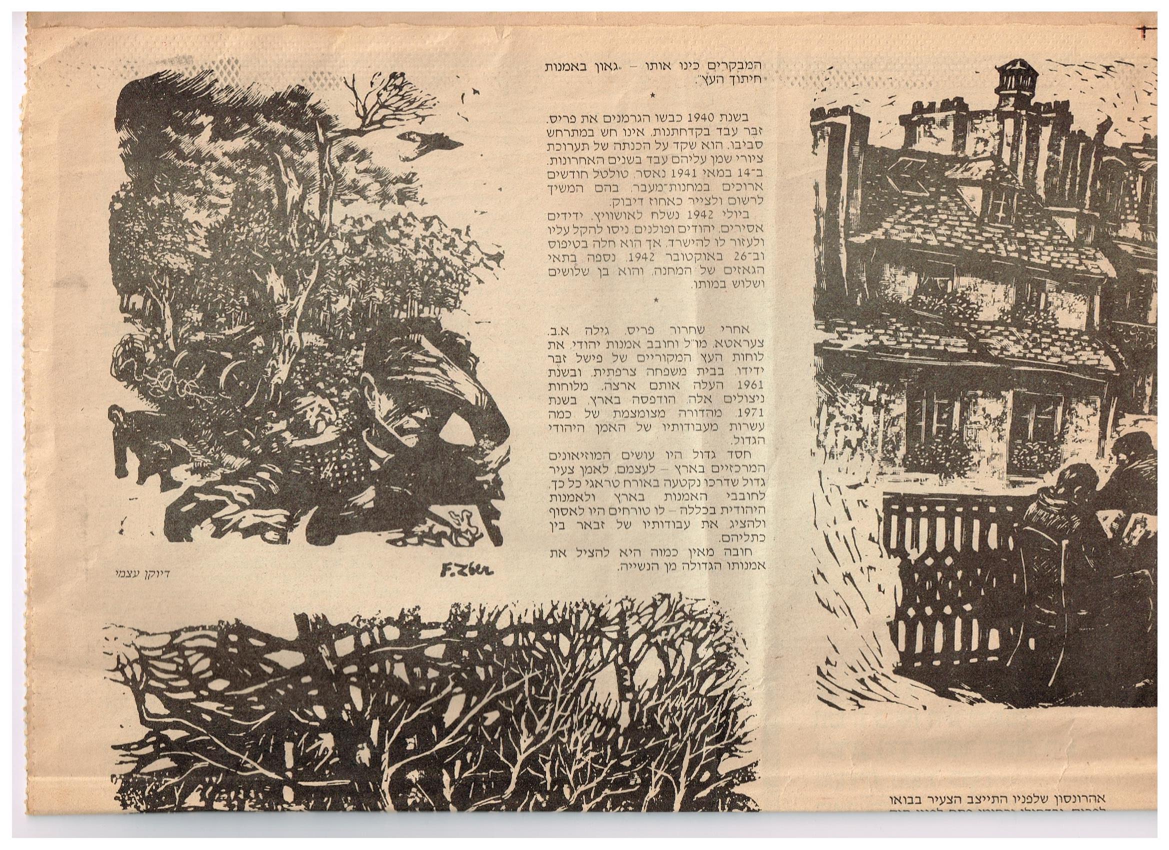 אחרי שחרור פריס, גילה א.ב. צעראטא, מו"ל וחובב אמנות יהודי את לוחות העץ המקוריים של פישל זבֶּר ידידו בבית משפחה צרפתית, ובשנת 1961 העלה אותם ארצה. מלוחות ניצולים אלה, הודפסה בארץ, בשנת 1971 מהדורה מצומצמת של כמה עשרות מעבודותיו של האמן היהודי הגדול.