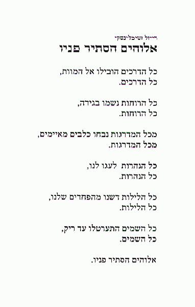 The poem translated to Hebrew by Ada & Meir Holtzman z"l, 1998: