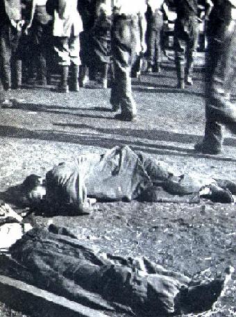 When our tormentors had satisfied their thirst for blood, we were divided into groups. I was put with a group that was assigned to handle the corpses. The work was very hard, because we had to drag each corpse, in teams of two, for a distance of approximately 300 meters. Sometimes we tied ropes around the dead bodies to pull them to their graves.